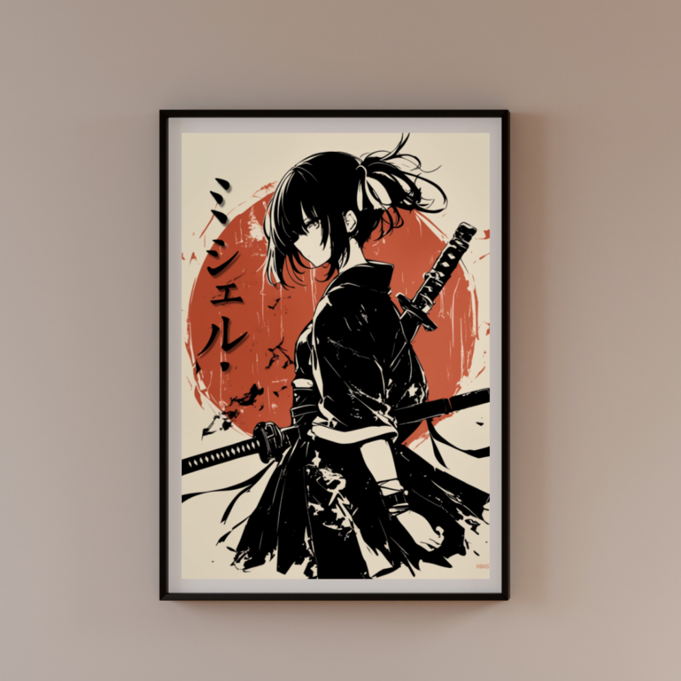 The work draws from traditional composition — red suns, ink contrast, structural balance — and reinterprets it with contemporary clarity.